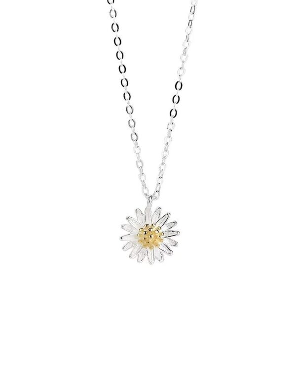 The contrast between the polished silver petals and the radiant gold centerpiece creates a perfect balance of elegance and nature-inspired beauty. Ideal for adding a fresh, floral touch to your outfit, this necklace brings a timeless, feminine appeal.