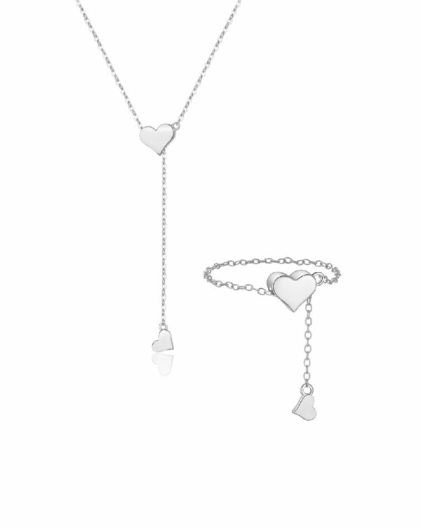 A set with an adjustable heart that can be worn in different ways, making it a versatile and elegant accessory. Made of high-quality silver, the ring and necklace with the heart feature a perfectly polished surface, creating a stylish look. The adjustable ring size allows for a perfect fit on any finger size, ensuring comfort throughout the day. Its minimalist yet special design makes it the perfect gift.