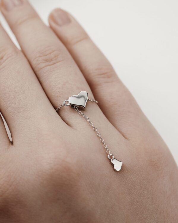 Ring: adjustable size, weight 1 g., heart 7 and 4 mm